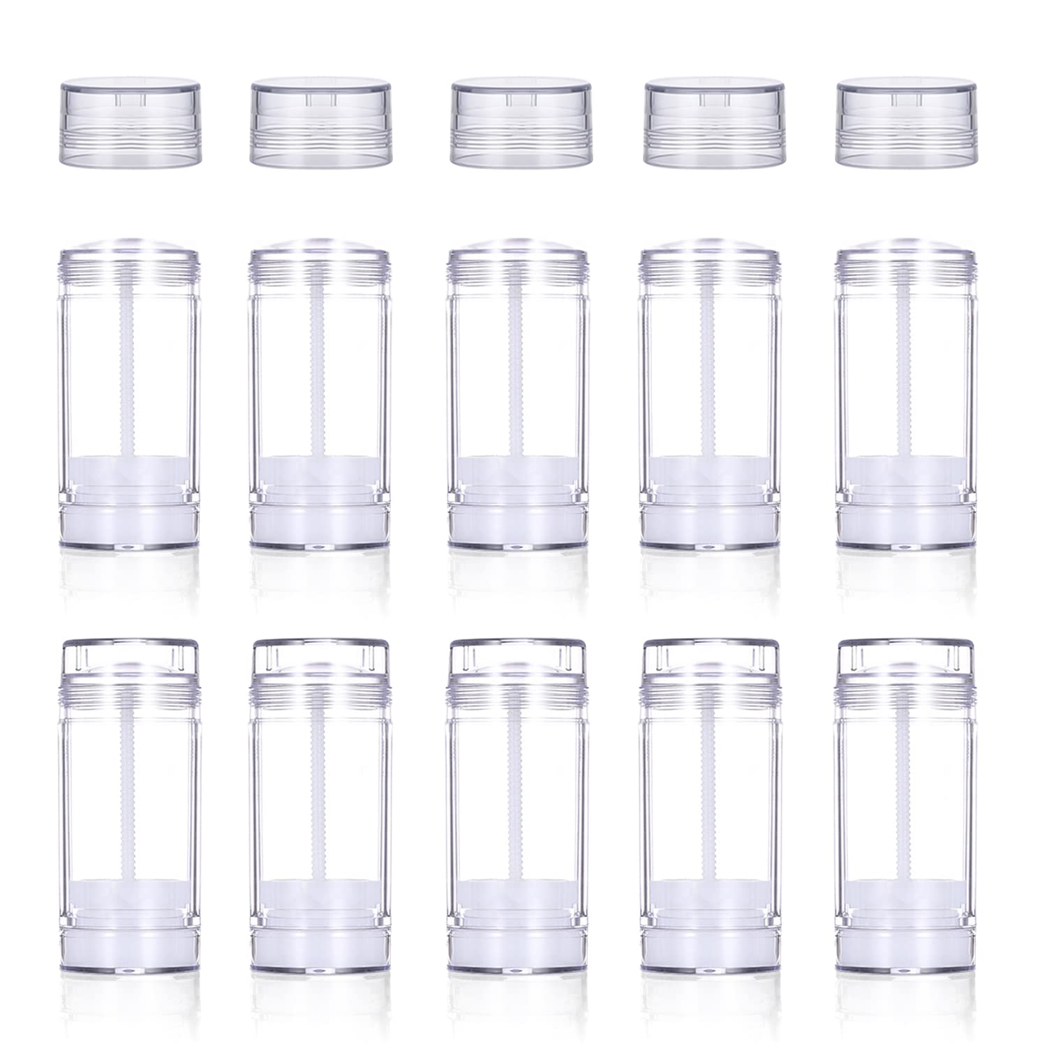 15ml/0.5oz Deodorant Containers Plastic Clear Twist-up Bottom Filling Stick Refillable Deodorant Bottles Lip Balm Tubes for DIY&Travel-10 Pack