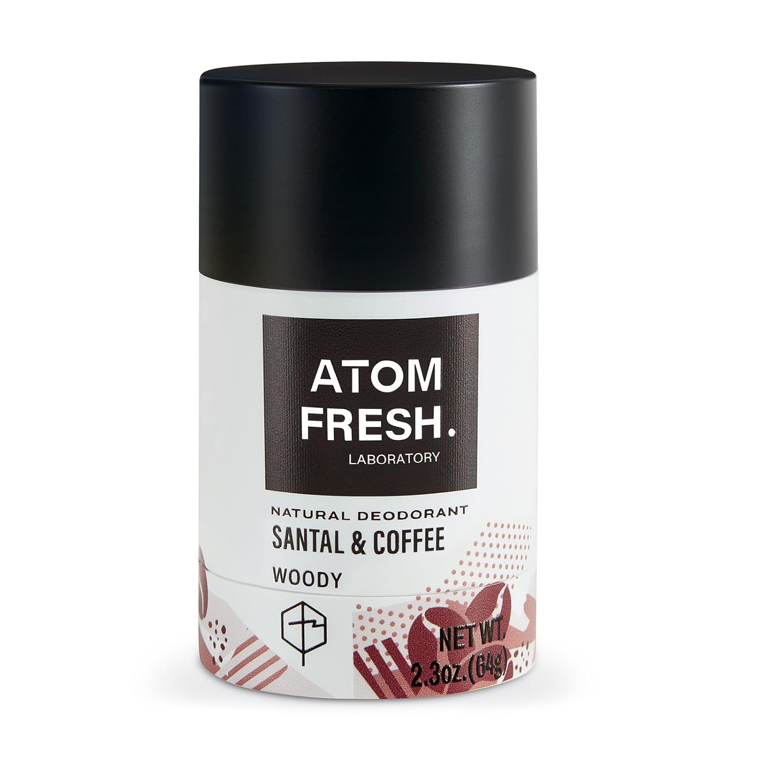 Atom Fresh Lab Natural Deodorant | 2.3 Oz Solid Stick | Santal & Coffee | Aluminum-Free, Baking Soda-Free | Vegan, Cruelty-Free, Skin-Safe