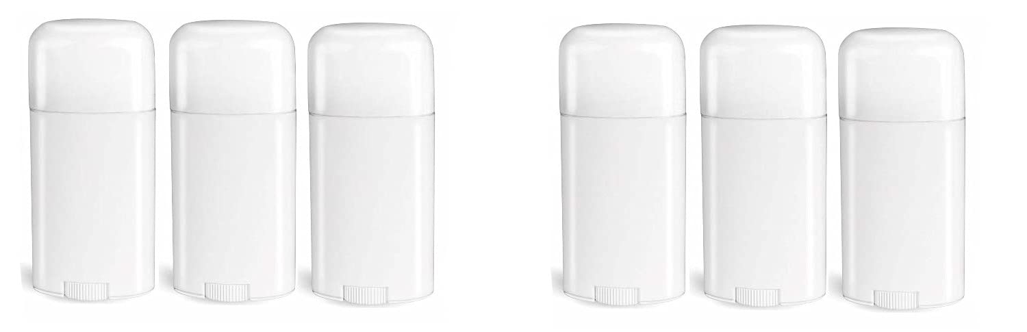 Deodorant Container - Empty - 2.65 Ounce - Twist-Up Refillable Plastic Tube for DIY Deodorants - Cosmetic Crafts - Pack of 6 – Oval Cap- By Natural Farms