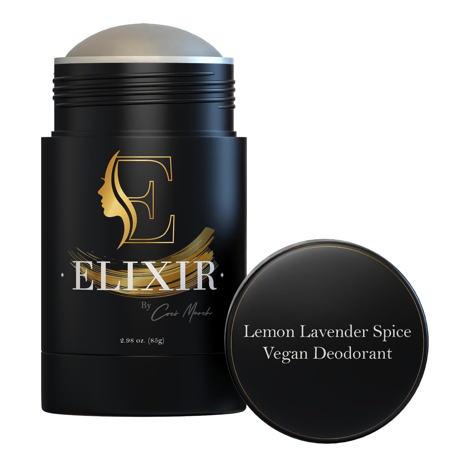Elixir by Coco March Aluminum Free Vegan Deodorant-Lemon Lavender-Gentle Natural Ingredients w/Effective Odor Protection, Essential Oil Scent, Made w/Organic Coconut Oil and Shea Butter- 2.98 oz