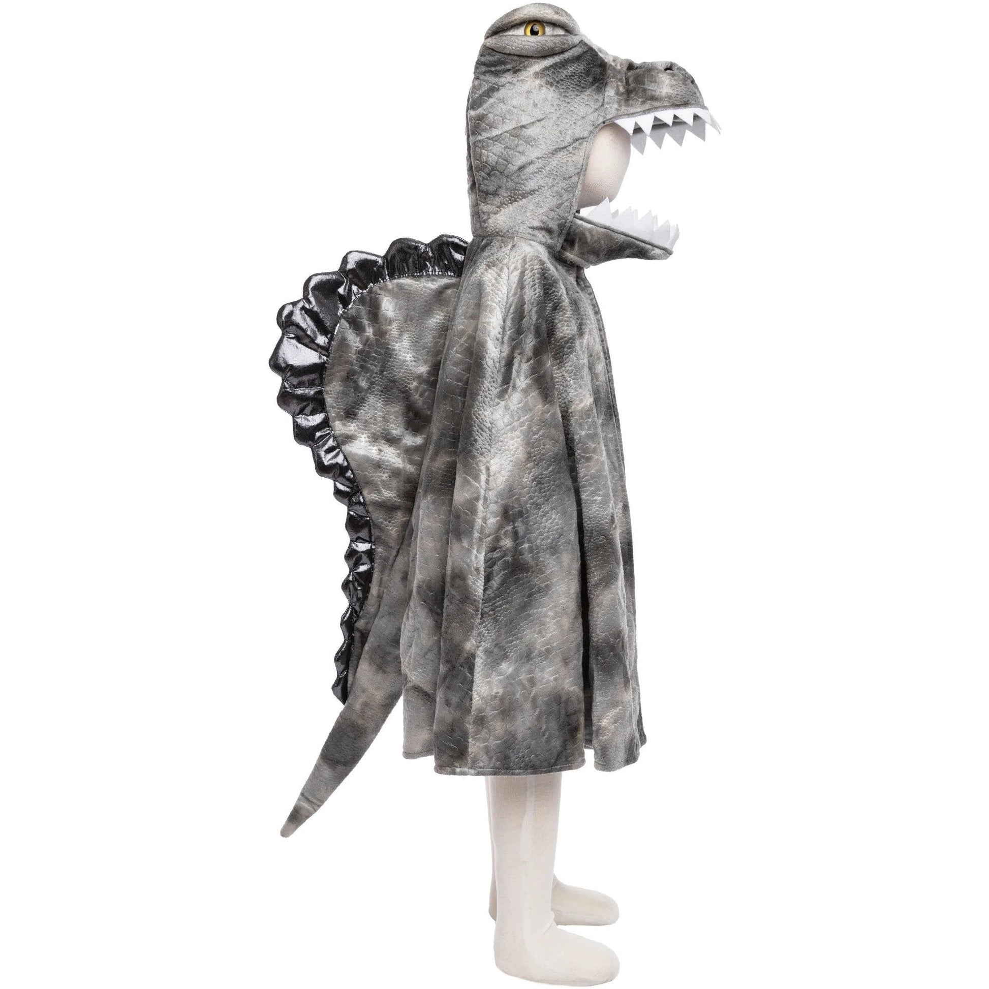 Transform into the largest-known carnivorous dinosaur with our Grandasaurus Spinosaurus Cape! Everything about this cape is EPIC, from its stuffed headpiece with fierce eyes and removable lower jaw, to the large 3D spines with shiny metallic details. This cape is made with a removable jaw and velcro closure at the neck.