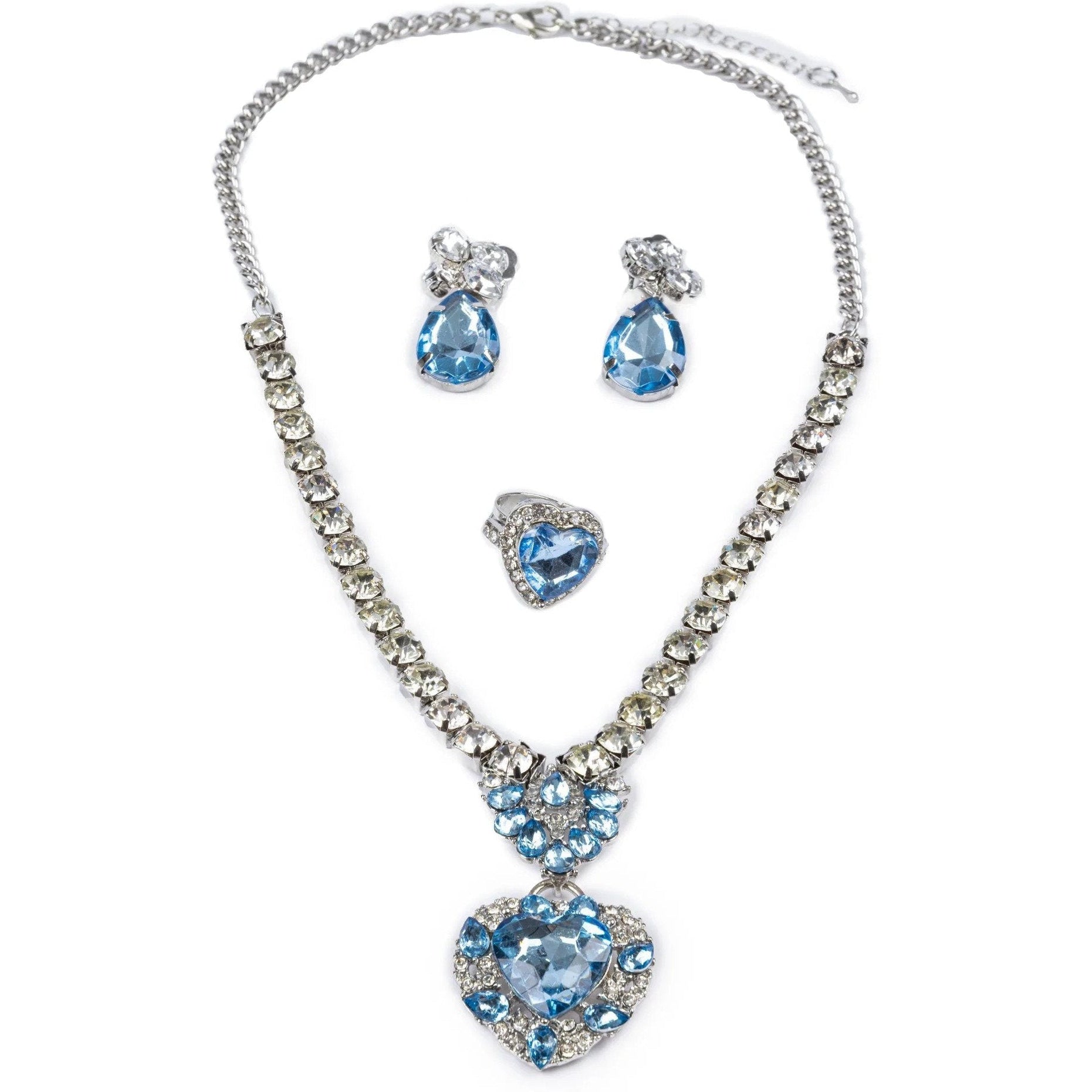 Sweet meets sophistication in The Audrey 5-piece jewellery set. This elegant boxed set includes two rings, a pair of clip-on earrings, and a matching necklace, all accented by floral-shaped charms and studded with soft pink, diamond, and lilac coloured gems.