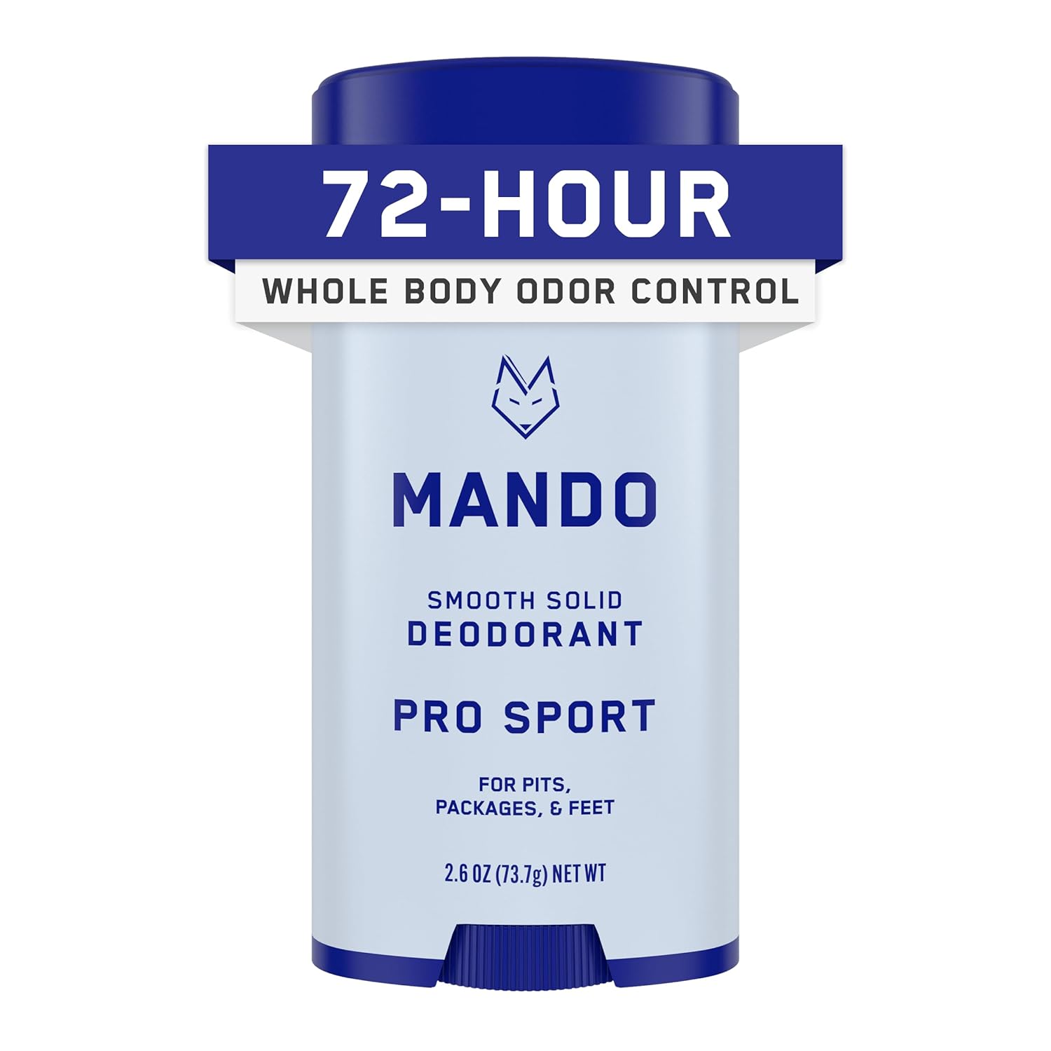 Mando Whole Body Deodorant For Men - Smooth Solid Stick - 72 Hour Odor Control - Aluminum Free, Baking Soda Free, Skin Safe - 2.6 Ounce (Pro Sport)