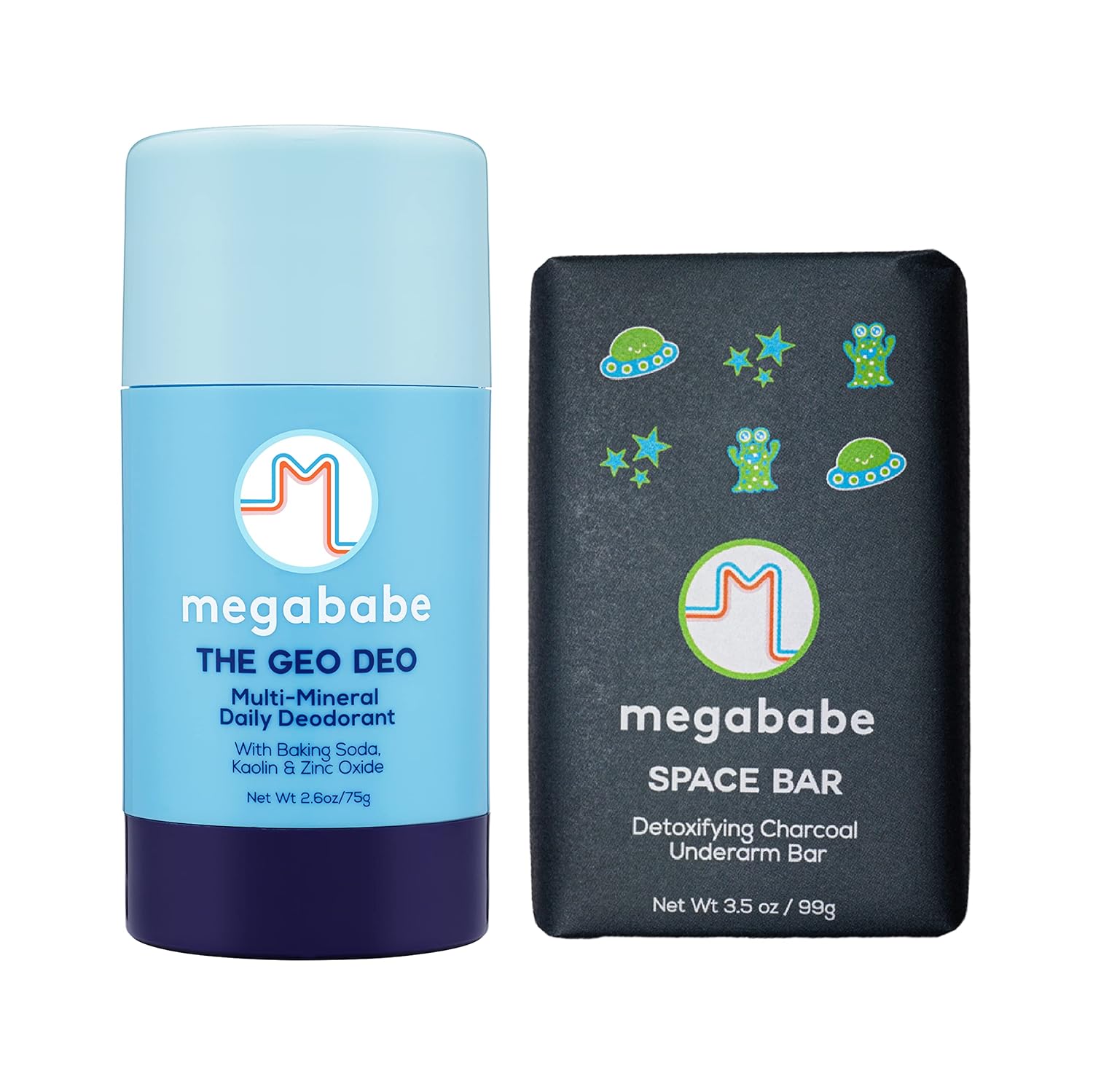 Megababe Underarm 2-Piece Bundle - Geo Deo Daily Deodorant 2.6 oz & Space Bar Detox Soap 3.5 oz | Odor Protection, Aluminum Free