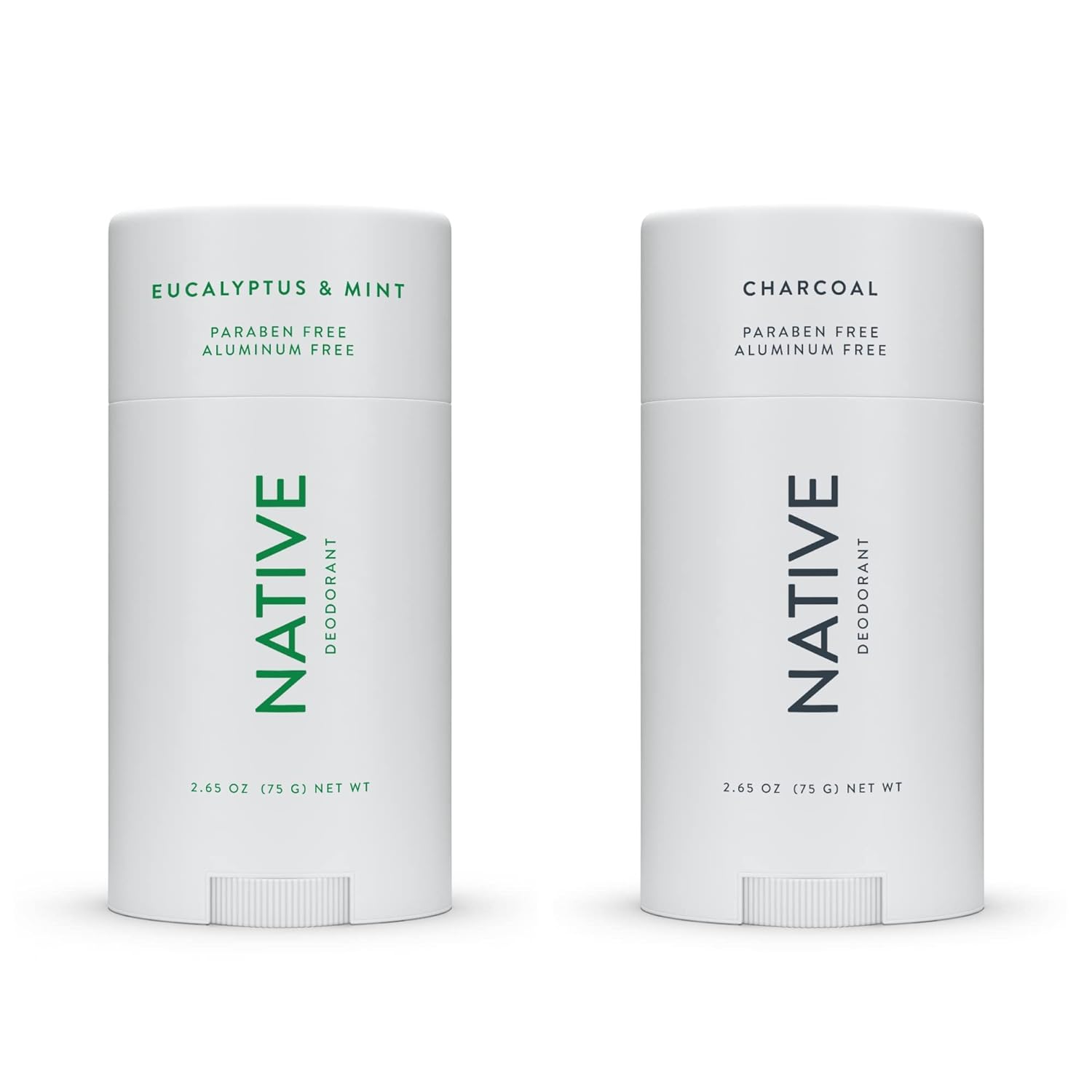 Native Deodorant | Natural Deodorant for Women and Men, Aluminum Free with Baking Soda, Probiotics, Coconut Oil and Shea Butter | Eucalyptus & Mint and Charcoal - Variety Pack of 2