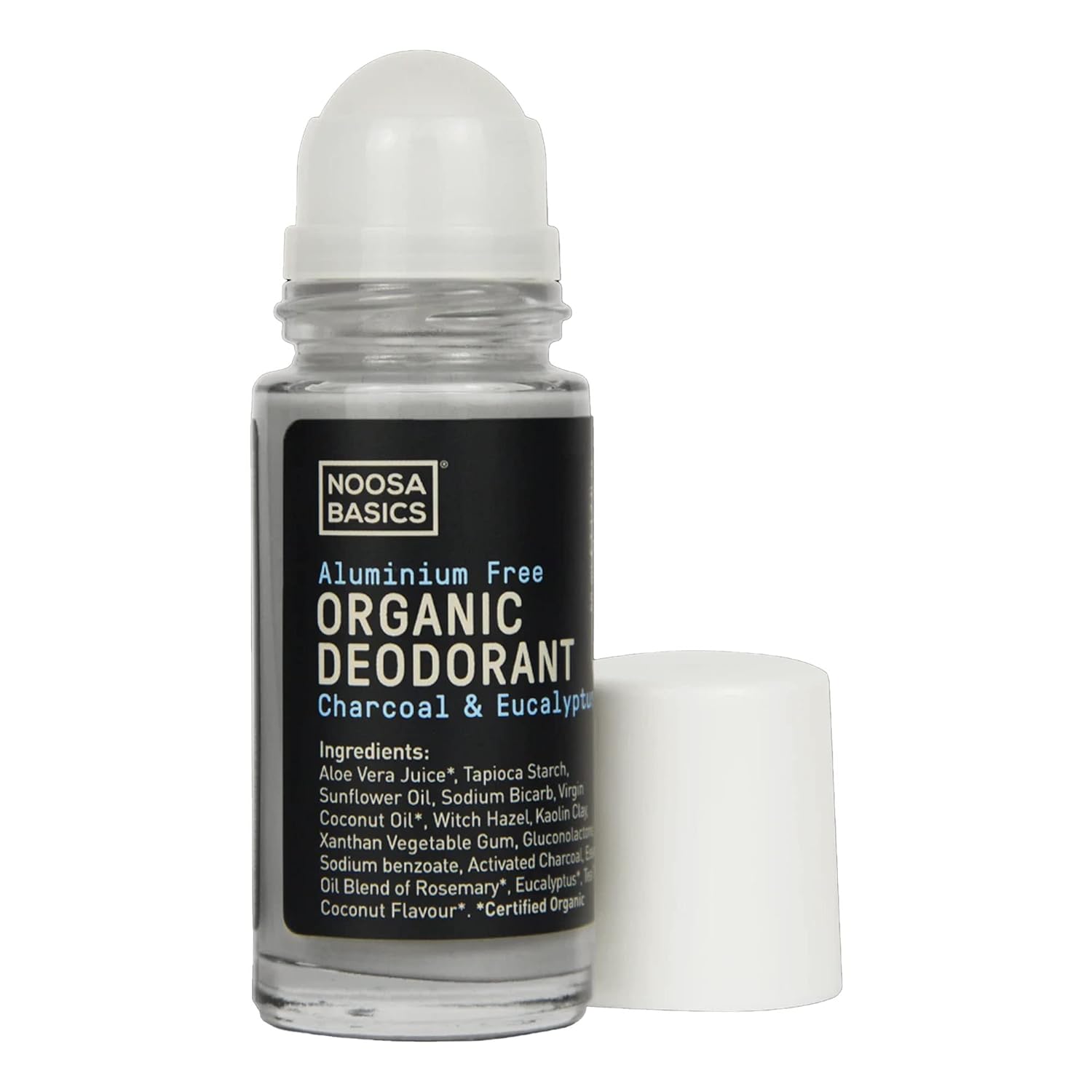 Noosa Basics Organic Roll On Deodorant with Activated Charcoal - Charcoal & Eucalyptus - 50ml - Aluminium Free - Made in Australia