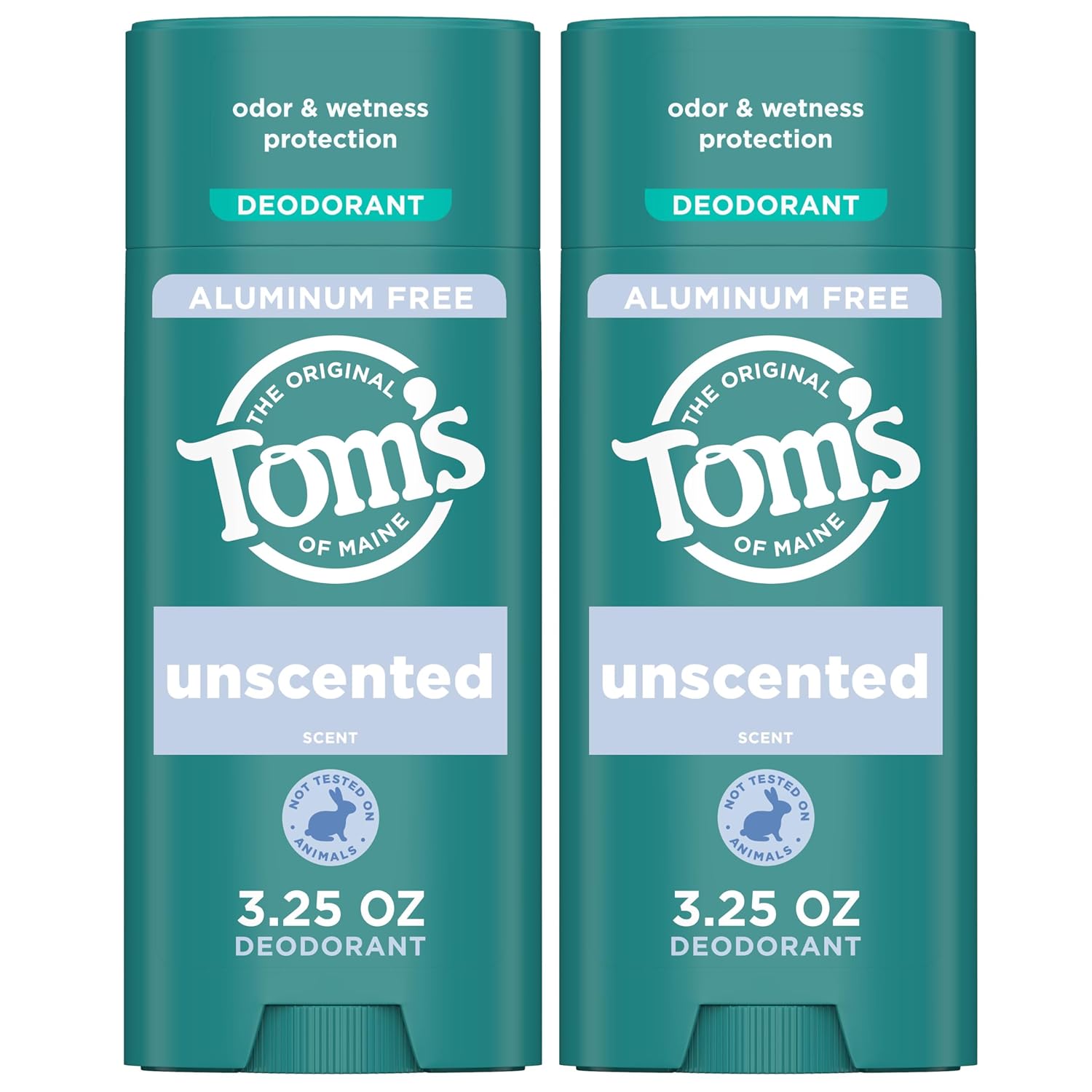 Tom’s of Maine Unscented Natural Deodorant for Women and Men, Aluminum Free, 3.25 oz, 2-Pack